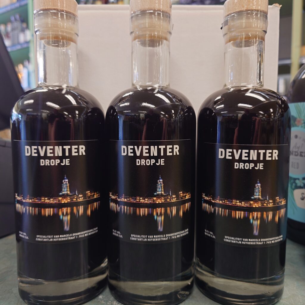 Uiteraard hebben wij ook een mooi assortiment van Deventer Dranken. Zo hebben wij een zelf samengestelde Deventer Kruidenbitter, Deventer Koffie/Mokka Likeur, Deventer Dropje, Deventer Honing-Whisky likeur en een Deventer Stroopwafel Likeur. Afgevuld in mooie flessen en voorzien van een label met de skyline van Deventer gemaakt door een Deventer fotograaf.